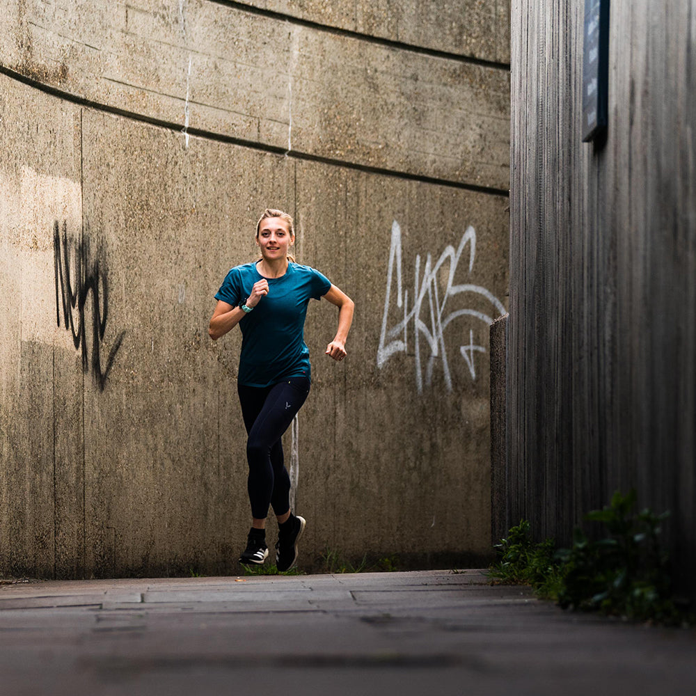 Made from recycled polyester sourced from recycled plastic bottles, our Nyx tights support your every stride.